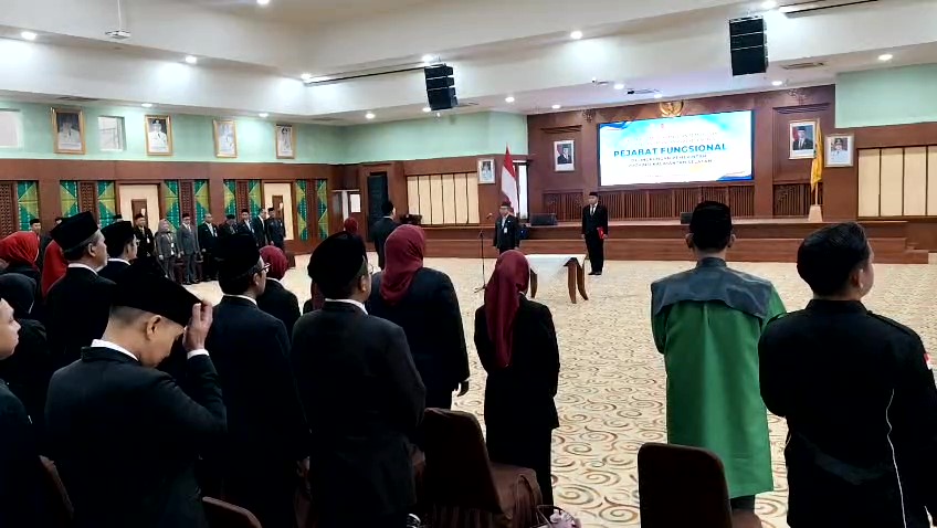 Prosesi pelantikan diawali dengan pembacaan surat keputusan pengangkatan pejabat fungsional di lingkungan Pemerintah Provinsi Kalimantan Selatan.
