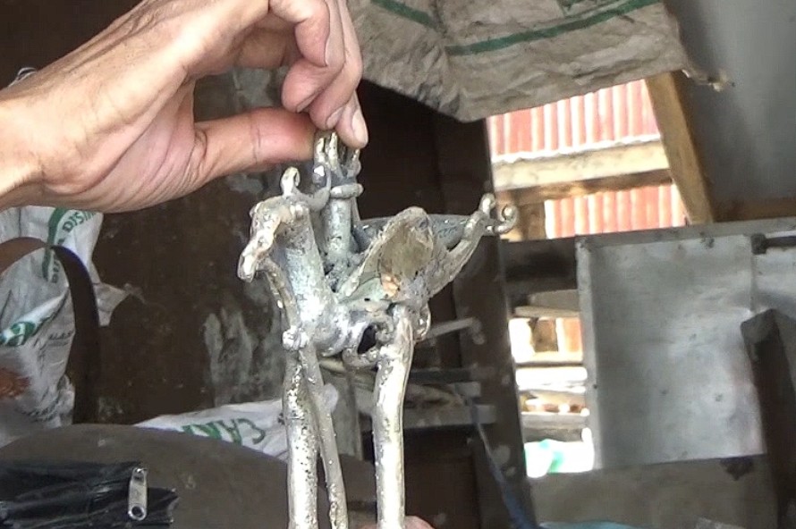 Di atas lahan sekitar 63 meter persegi yang tak jauh dari rumahnya, tahapan pembuatan dilakukan sepenuhnya secara manual, mulai melelehkan bahan kuningan menggunakan tungku api hingga menuangkannya ke dalam media cetak dari tanah liat khusus yang didatangkan dari Hulu Sungai Selatan.