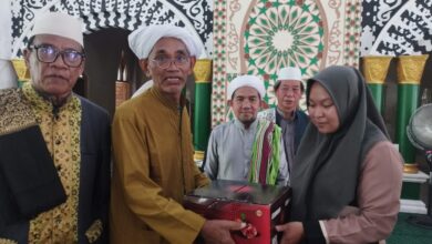 Penyerahan bantuan secara simbolis disaksikan pihak kecamatan Sungai Tabuk. Sedangkan paket sembako berisi beras, gula, teh, tepung terigu, minyak goreng, mie instan, dan susu.