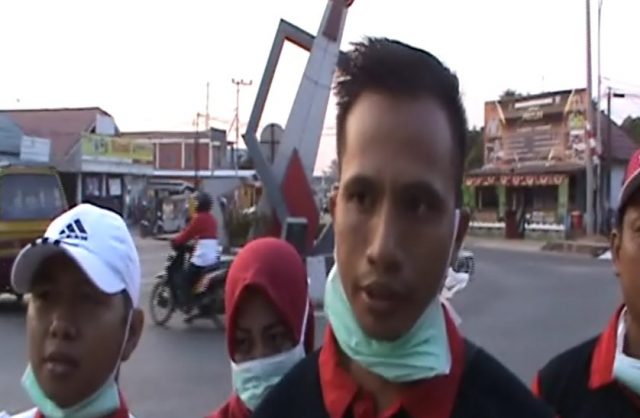 “Saat ini kami aksi bagi masker dan selebaran larangan membakar hutan dan lahan, pembagian yang kedua 300, sebelumnya 500 masker, harapannya untuk mencegah ISPA yang melanda Kalsel khususnya Tanah Lautâ€, ujar Muhammad Khaidir aktivis gerbang desa.