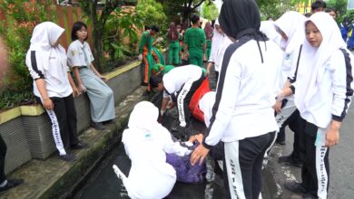 Ratusan Pelajar dan Guru Bersihkan Lingkungan Sekolah