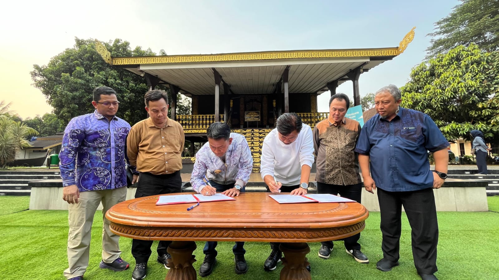 JAKARTA, DUTA TV Wali Kota Banjarmasin, Muhammad Yamin, melakukan penandatanganan kerja sama pemanfaatan lahan milik Kabupaten Kutai Kartanegara di depan Anjungan Kalsel, Taman Mini Indonesia Indah, belum lama tadi.