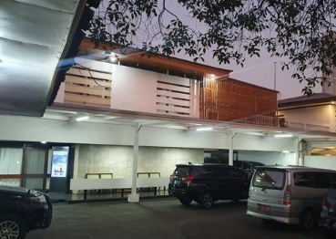 Gerbang rumah dinas tersebut tertutup rapat dan dijaga dua aparat kepolisian di pos. Namun, terlihat satu pintu terbuka yang di depannya dipenuhi sepatu.