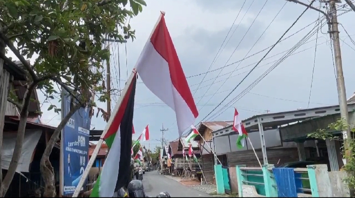 Bentuk Kepedulian, Ratusan Bendera Palestina Terpasang di Alalak Tengah