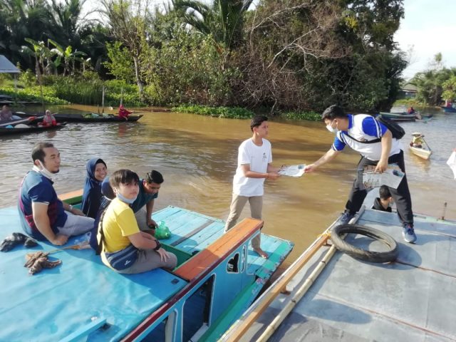 Hal tersebut terlihat saat personel Biro SDM Polda Kalsel dengan menggunakan sarana jukung (Perahu, red) menyusuri bantaran sungai menuju Pasar Terapung Lokbaintan Kabupaten Banjar, Kalsel, untuk mengkampanyekan penerimaan anggota Polri tersebut, Minggu (4/4/2021).