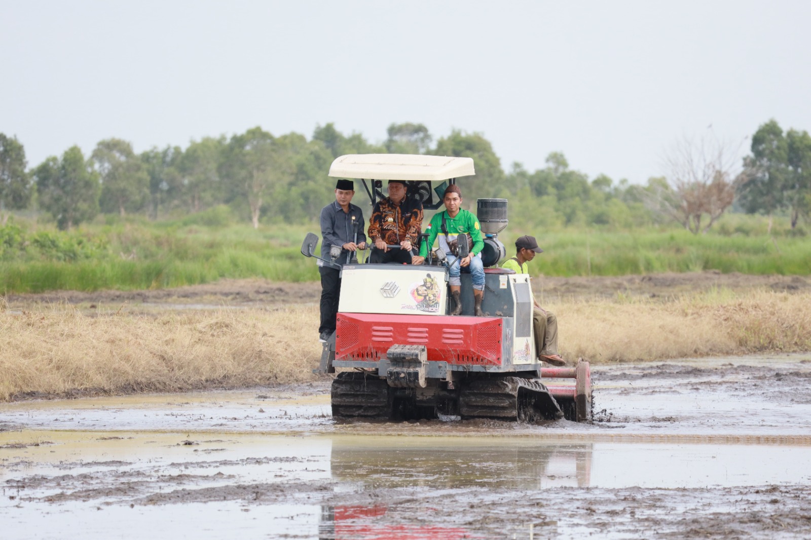 “Ketika kita menanam menggunakan mesin, itu berarti kita harus memastikan kondisi air sesuai kebutuhan. Jika air dapat kita kendalikan, maka proses tanam menjadi lebih mudah dan hasilnya maksimal. Sebaliknya, jika curah hujan tinggi dan tidak terkendali, bisa menyebabkan lahan terendam dan tanaman mati,” jelasnya.