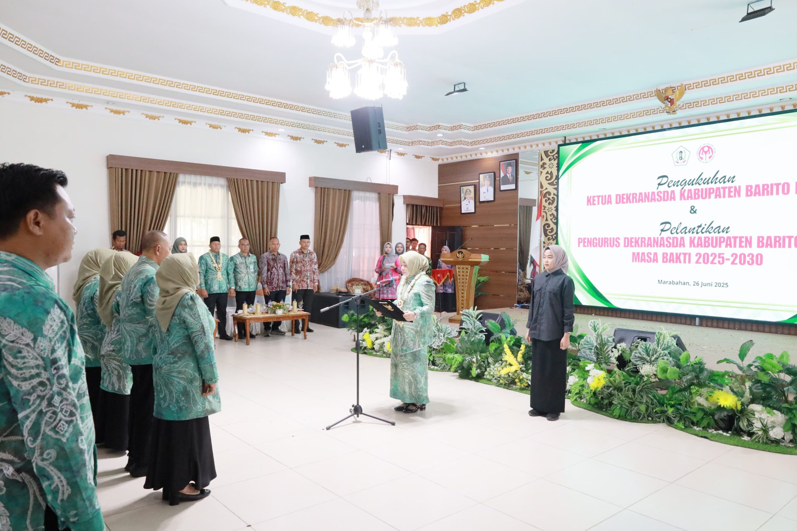 Marabahan, DUTA TV – Bupati Barito Kuala H. Bahrul Ilmi mengukuhkan Ketua Dekranasda (Dewan Kerajinan Nasionsl Daerah) Hj. Noor Hayati Bahrul Ilmi. Kemudian dilanjutkan Ketua Dekranasda Batola melantik pengurus Dekranasda Kab. Barito Kuala dengan masa bhakti tahun 2025-2030 di Aula Selidah , Kamis (26/06).