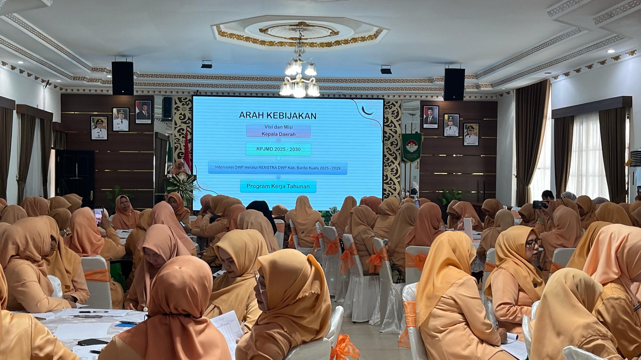 “Organisasi ini telah melewati berbagai dinamika luar biasa, dan di setiap masa kepengurusan selalu ada tantangan dan peluang. Karena itu, saya sangat mengapresiasi terselenggaranya rapat kerja ini. Selain mempererat silaturahmi antar istri ASN di lingkungan Pemerintah Kabupaten Barito Kuala, forum ini juga menjadi ajang menyamakan persepsi terkait pelaksanaan program kerja DWP yang menyentuh langsung masyarakat,” pesannya.