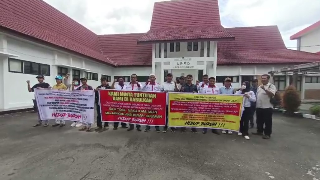 Kedatangan buruh dari serikat buruh nasional indonesia SBNI kali ini, menyampaikan tuntutan kepada DPRD dan pemerintah Kabupaten Tanah Laut, agar menutup aktivitas tambang biji besi di desa pemalongan. Selain itu biji besi yang sudah keluar dari areal tambang agar tidak dijual, sebelum perselisihan antara perusahaan daerah baratala tuntung pandang dengan PT. Bimo Taksoko Guno atau BTG selesai.