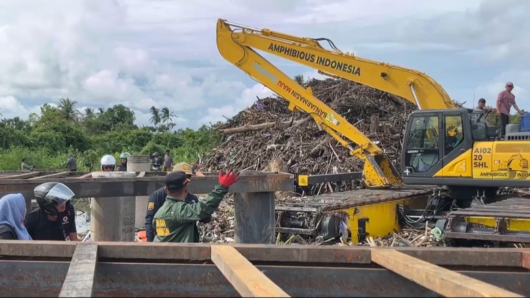 Sampah Tabrak Jembatan Gantung Di Desa Aluan Barabai