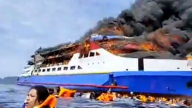 Panik KM Barcelona Terbakar, Penumpang Nyebur ke Laut