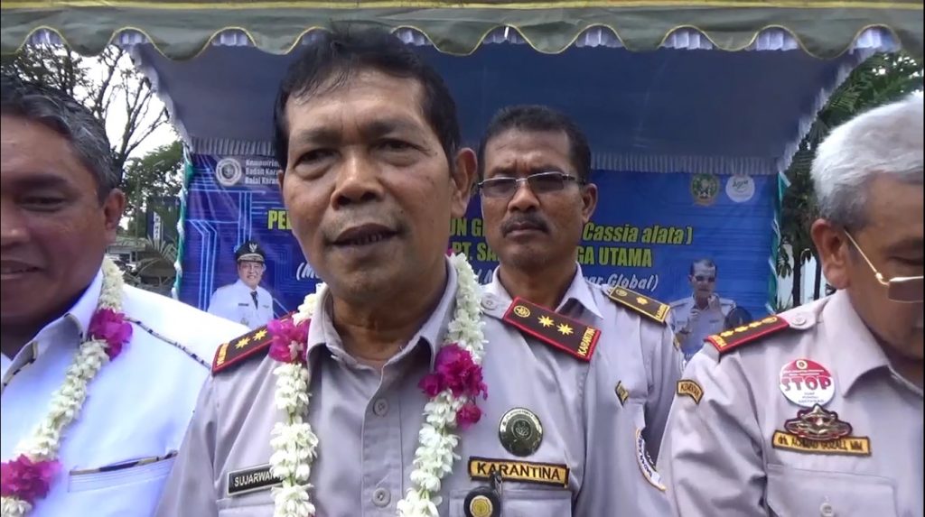 “pertama saya bersyukur sangat bisa menyaksikan prestasi di Kalsel pertama kali yang saya liat, daun gelinggang yg diekspor, saya bersyukur kesempatan bagi kita untuk menyadari bahwa potensi yang luar biasa kita tidak pernah terpikirkan, kurang memperhatikan tapi justru swasta sudah membaca peluang-peluang itu, mempunyai semangat yang perlu kami tekankan momen espor sekaligus sebagai awal mengembangkan potensi di Kalsel produk-produk yang selama ini terkesan tidak dapat perhatian†tambah Sujarwanto, Kepala Pusat Kpatuhan Kerjasama Dan Informasi Perkarantinaan Barantan