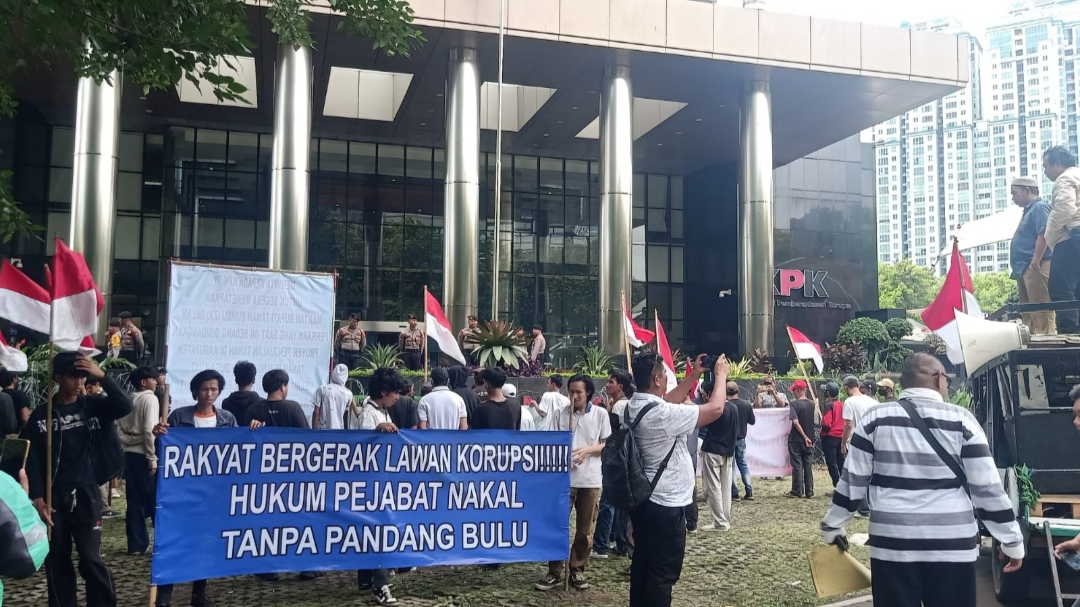 Dengan membawa spanduk bertuliskan tuntutan, massa meminta KPK segera turun tangan untuk menindaklanjuti laporan dugaan korupsi yang terjadi di Kalimantan Selatan.