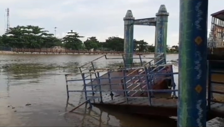 Banjarmasin, DUTA TV —  Separuh dermaga di seberang Balai Kota Banjarmasi karam sejak beberapa waktu lalu. kondisi ini tentunya sangat membahayakan bagi warga yang menggunakan fasilitas di tempat ini.