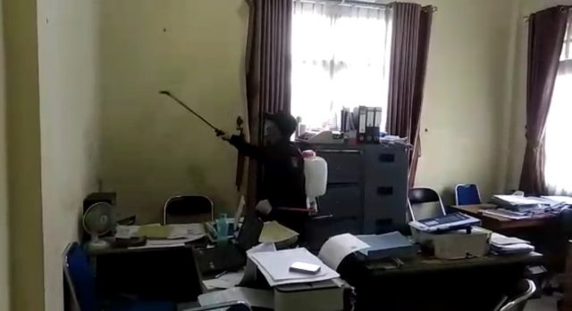 “Seluruh area kita semprot disinfektan, di Pemko, dewan, di Bakeuda, mudahan hari ini bisa selesai. Sebenarnya ini salah satu upaya, walaupun kita sebenarnya belum ada kasus, ini adalah upaya mencegah penularan virus ini (Covid-19), disamping upaya lain yang dilakuan Dinkes,” kata Kuswanta.