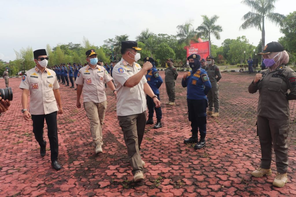 Dalam amanatnya Direktur Satuan Polisi Pamong Praja dan Linmas Kemendagri Bernhard E Rondonuwu mengatakan, kedatangan kami ke Tanah Bumbu adalah guna melihat terkait perkembangan Covid-19 di daerah, yang mana saat ini di Indonesia masih terjadi peningkatan yang signifikan dari kasus Covid-19, dibuktikan dengan pemetaan zonasi risiko daerah yang masih memiliki resiko tinggi.