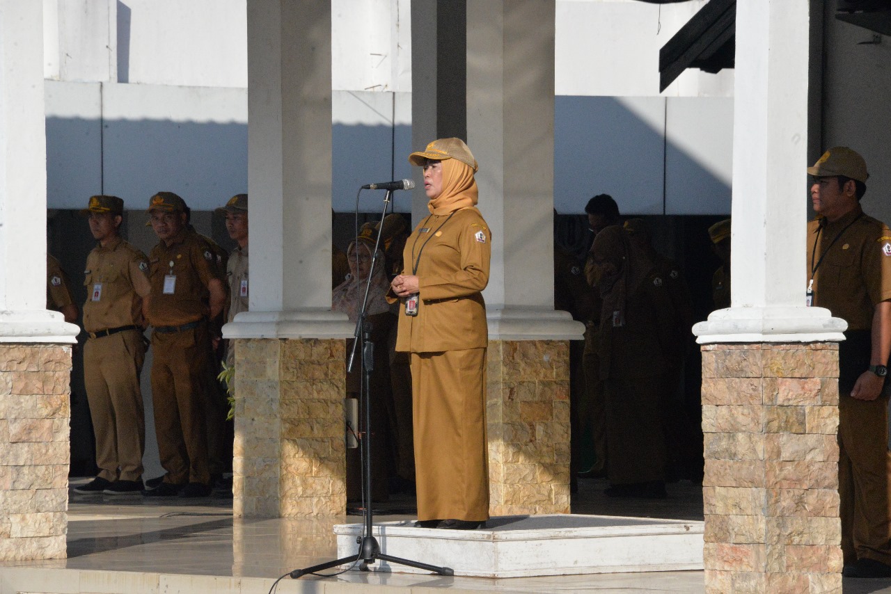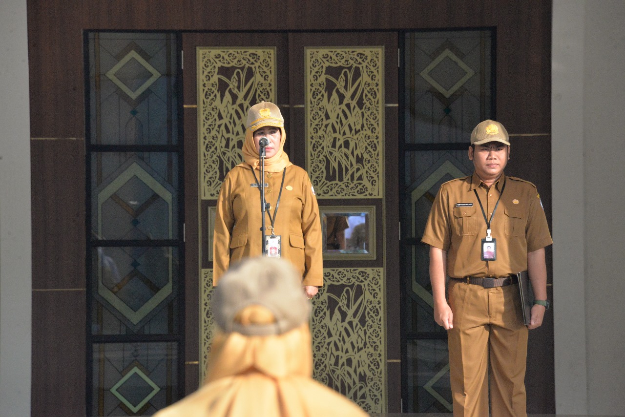 Marabahan, DUTA TV — Kepala Dinas Ketenagakerjaan dan Transmigrasi (Disnakertrans) Barito Kuala Hj. Harliani, SIP, M.Si setelah menjadi pembina upacara menerima wawancara oleh tim Media Center Dinas Kominfo di halaman kantor Pemerintah Daerah, Senin (15/07).
