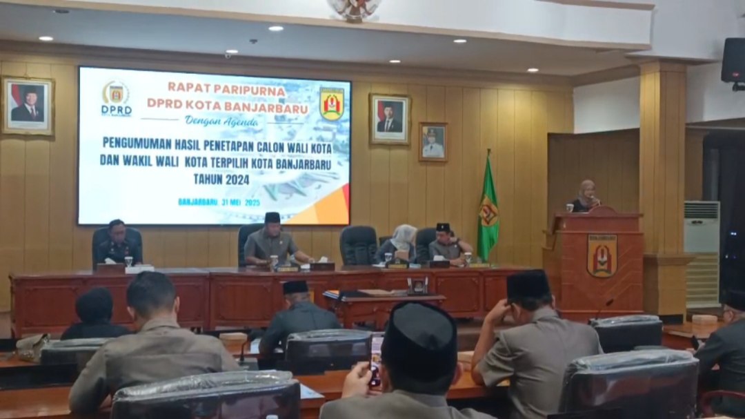 Banjarbaru, Duta TV – Ketua DPRD Kota Banjarbaru, Gusti Rizky Sukma Iskandar Putera, memimpin sidang paripurna dengan agenda pengumuman penetapan Wali Kota dan Wakil Wali Kota Banjarbaru terpilih periode 2025–2030. Paripurna kali ini dihadiri anggota dewan, Forkopimda, dan pimpinan SKPD Pemko Banjarbaru, serta instansi terkait, yang mana pengumuman ini sebagai bagian dari amanat undang-undang yang mengatur tentang pemilihan kepala daerah sehingga diharapkan seluruh masyarakat Banjarbaru mengetahuinya.