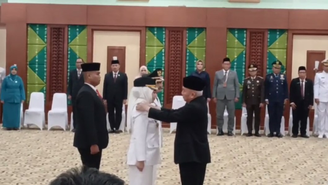 Banjarbaru, DUTA TV — Gubernur Kalimantan Selatan Muhidin, mewakili menteri dalam negeri mendagri RI, melantik Ernalisa Halabi dan Wartono sebagai Walikota dan Wakil Walikota Banjarbaru periode 2025 2030, di Gedung Idham Khalid Perkantoran Gubernur Kalsel di Banjarbaru, Sabtu siang (21/06).