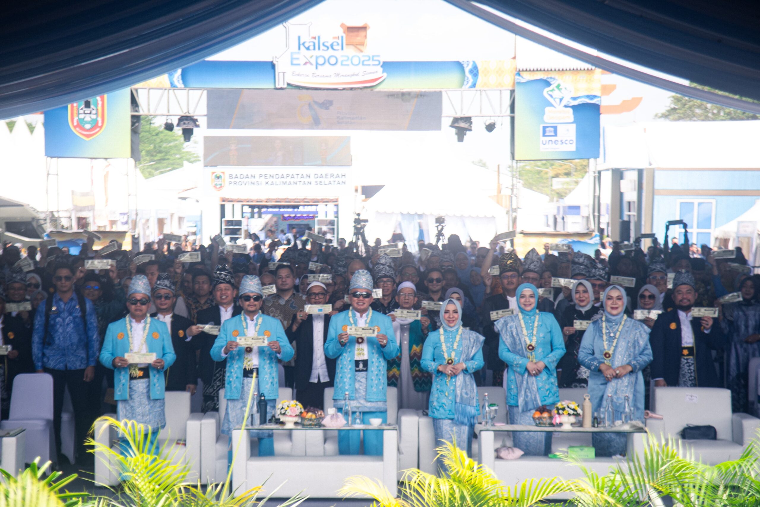 Banjarbaru—dutatv.com, Sebuah penghargaan terhadap kepatuhan pajak daerah, Gubernur Kalimantan Selatan H. Muhidin didampingi Wakil Gubernur Kalsel, Hasnuryadi Sulaiman dan Sekretaris Daerah Provinsi Kalsel, Muhammad Syarifuddin meluncurkan kegiatan Gebyar Panutan Pajak Kendaraan Bermotor dalam rangkaian kegiatan Hari Jadi (Harjad) ke-75 Provinsi Kalimantan Selatan di halaman Perkantoran Gubernur Kalsel, Kota Banjarbaru pada Kamis (14/8/2025).