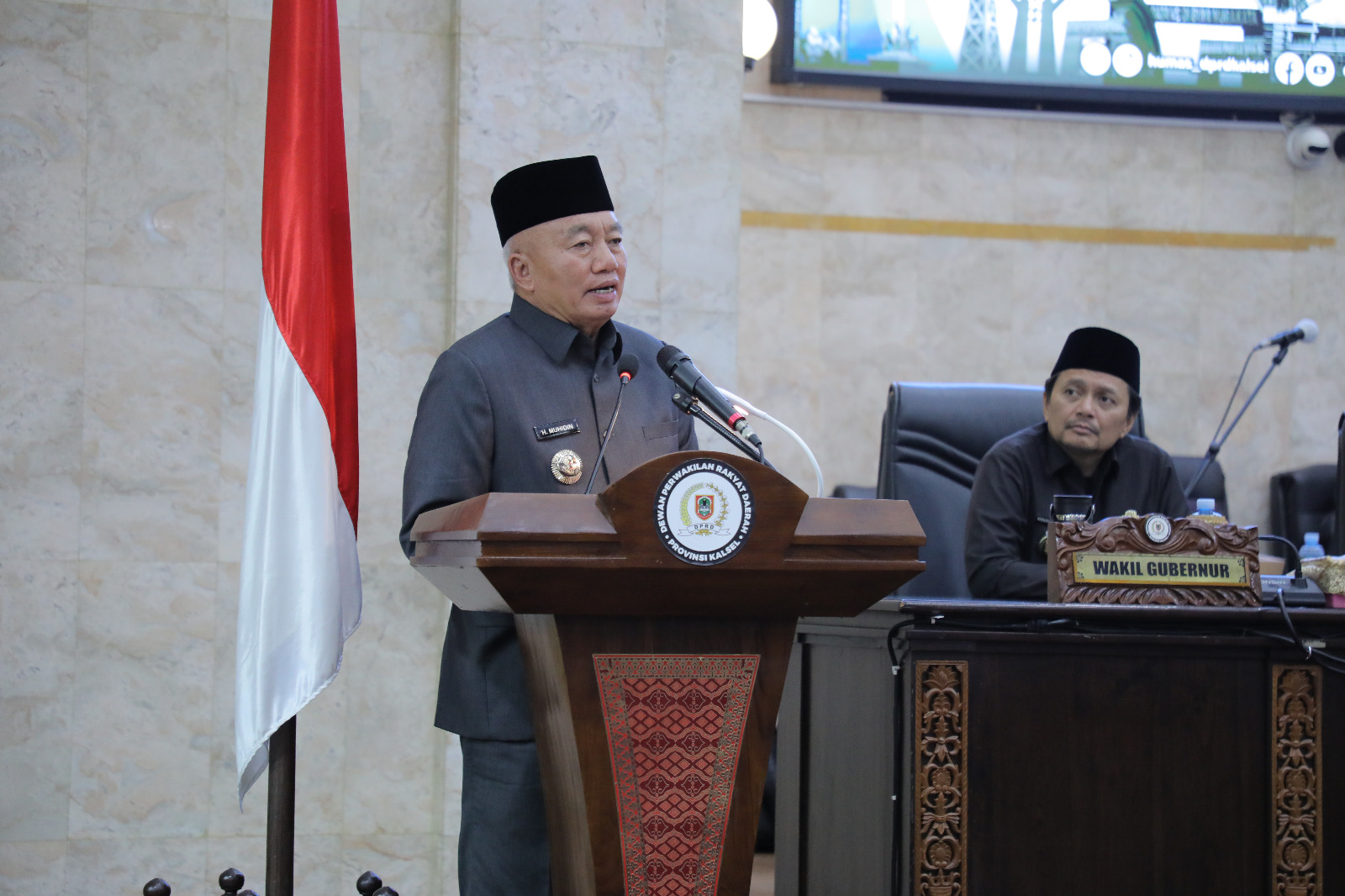 Rapat paripurna yang dipimpin Ketua DPRD Kalsel H Supian HK didampingi dua wakil ketua ini, dihadiri Gubernur Kalsel H Muhidin didampingi Wakilnya Hasnuryadi Sulaiman, Kepala Bank Indonesia Kalsel Fadjar Majardi, Dirut Bank Kalsel Fahrudin, kepala instansi vertikal, forkopimda/yang mewakili, para asisten, staf ahli dan tim ahli gubernur, serta kepala SKPD lingkup Pemprov.