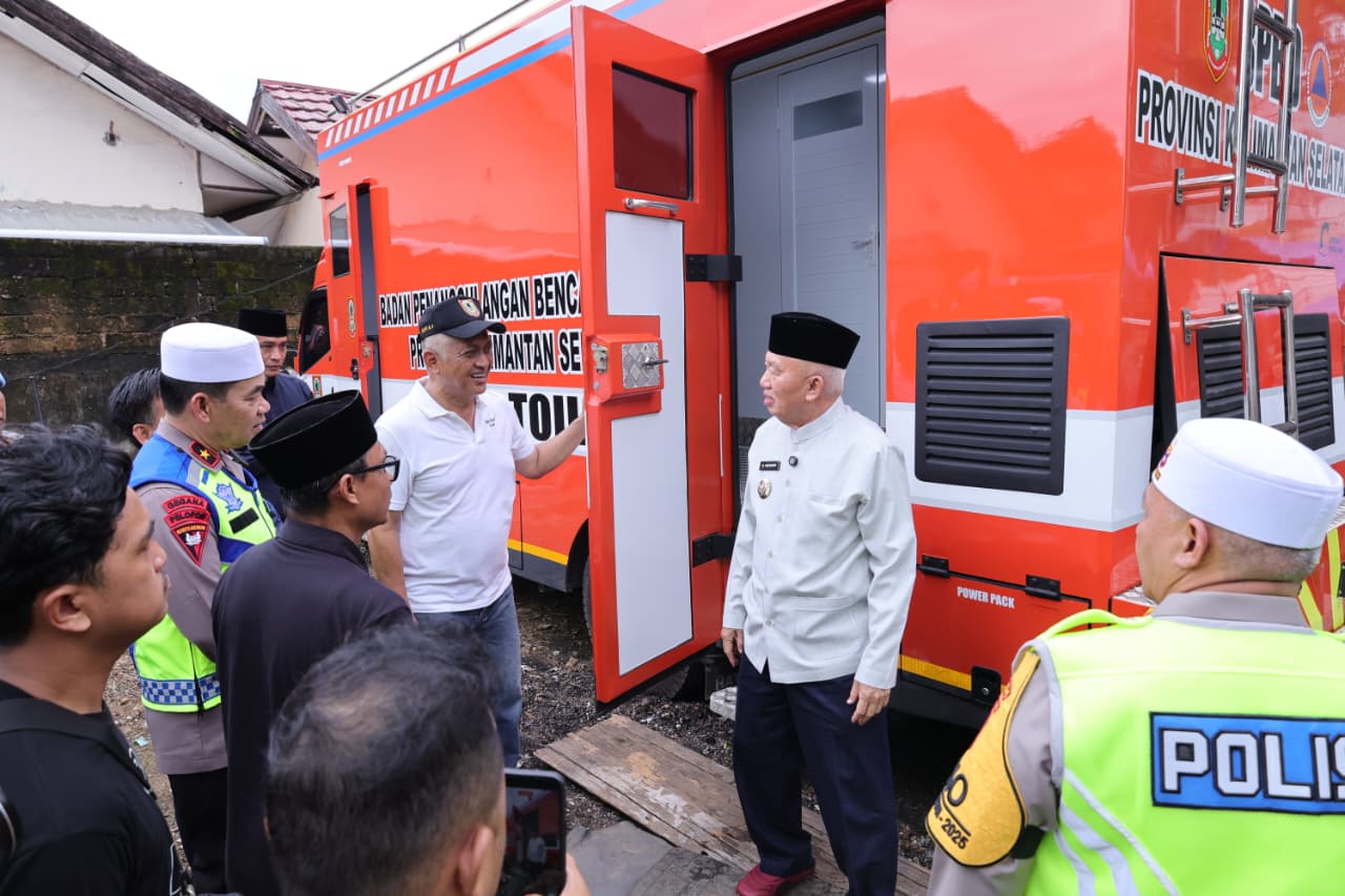 Setibanya di lokasi, Gubernur H. Muhidin langsung mengecek fasilitas Water Closet (WC) mobil yang disediakan Badan Penanggulangan Bencana Daerah (BPBD) Kalsel serta memastikan ketersediaan suplai air untuk kebutuhan wudhu jamaah. Di sela peninjauan, Gubernur dan istri tampak menyapa masyarakat serta pengguna jalan di sekitar Jalan A. Yani yang antusias mengabadikan momen bersama.