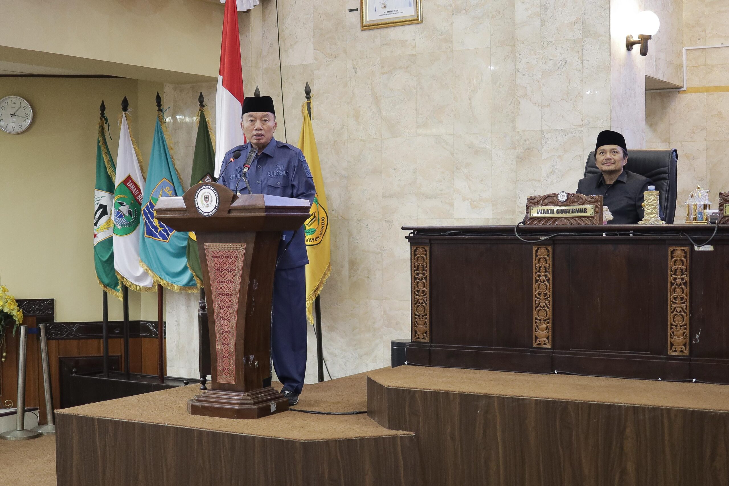 Banjarmasin, DUTA TV — Gubernur Kalimantan Selatan Haji Muhidin menyampaikan penjelasan terhadap Raperda tentang Pengelolaan Usaha Pertambangan Mineral dan Batubara dalam rapat paripurna.