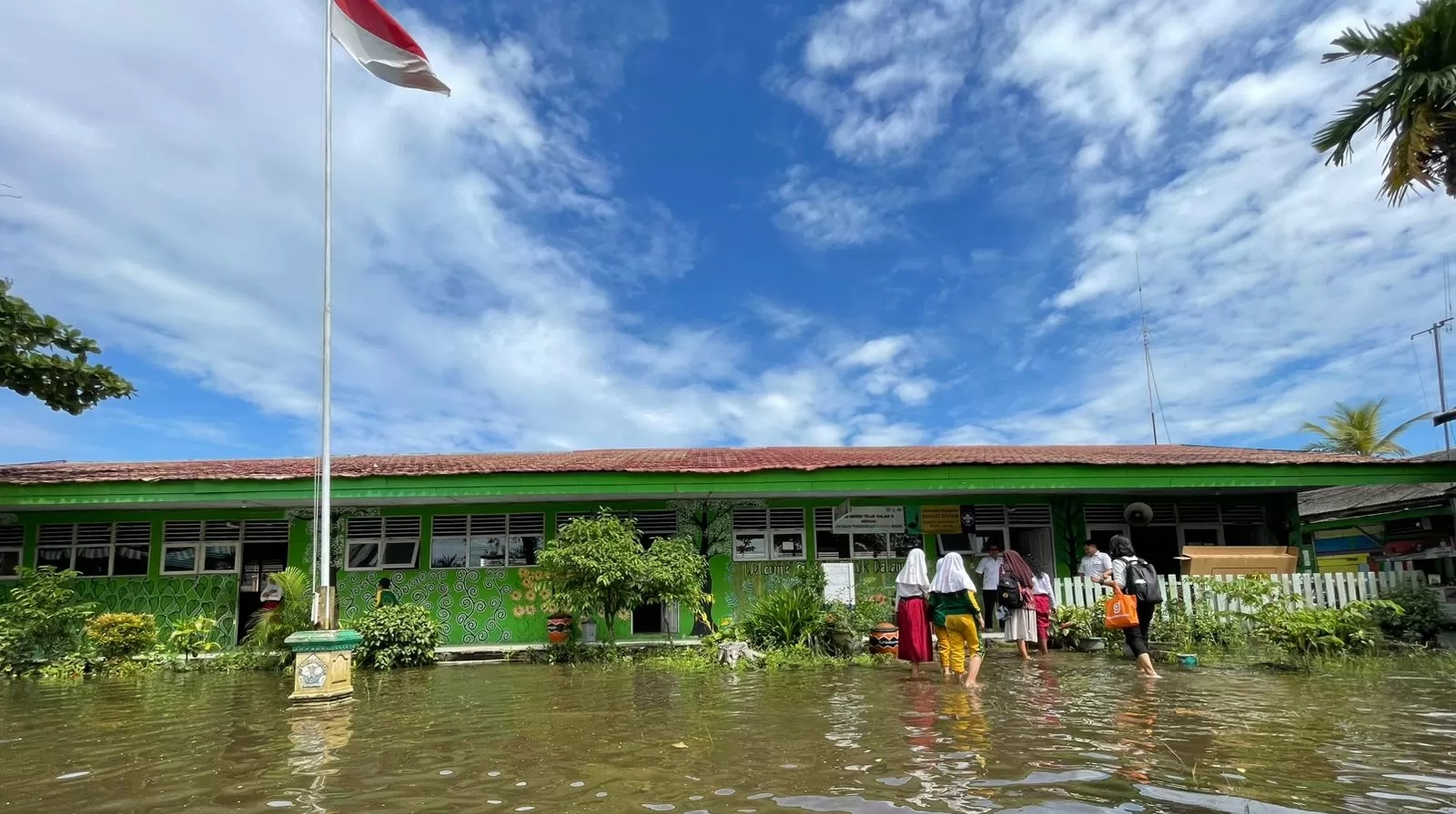 Halaman SDN Teluk Dalam 11 Tergenang Banjir Rob