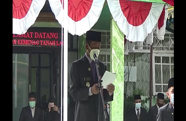 Tanah Laut, DUTA TV — Upacara peringatan ke-75 Hari Amal Bakti (HAB), berjalan khidmat di halaman kantor Kemenag kabupaten Tanah Laut, Selasa kemarin (05/01/2021).