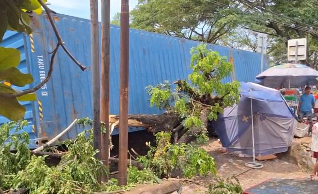 “Tiba-tiba container langsung terbalik, ada korban dan terjepit di bawah satu, dagangan terbanting dan motor juga rusak. Sopir truk container sudah dibawa polisi,” ungkapnya.