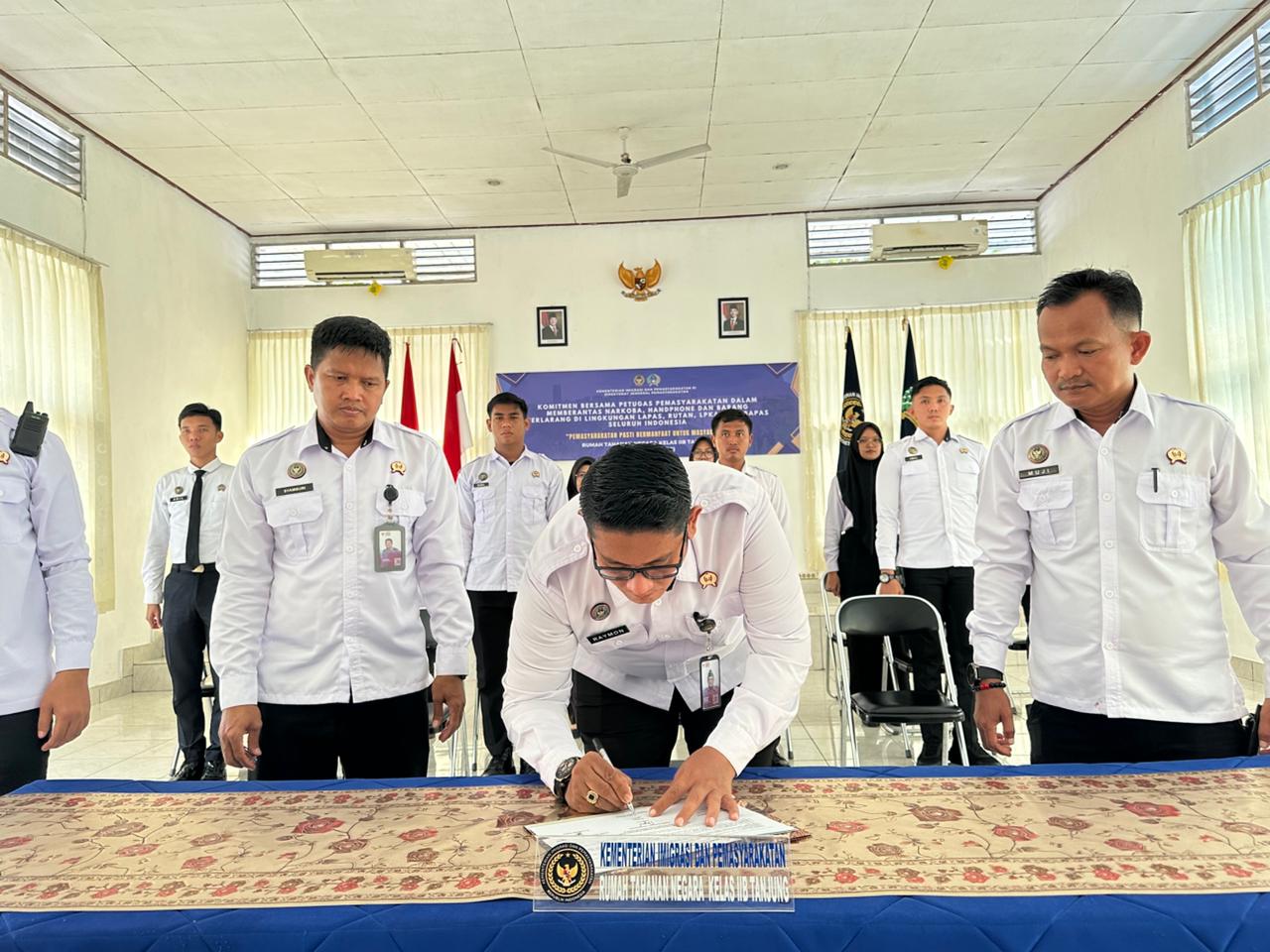 Penandatanganan komitmen dimulai oleh para Pimpinan Tinggi Pratama, dilanjutkan oleh Direktur Jenderal Pemasyarakatan Mashudi, kemudian disusul Kepala Kantor Wilayah serta para Kepala Unit Pelaksana Teknis (UPT) bersama pejabat struktural di seluruh Indonesia.