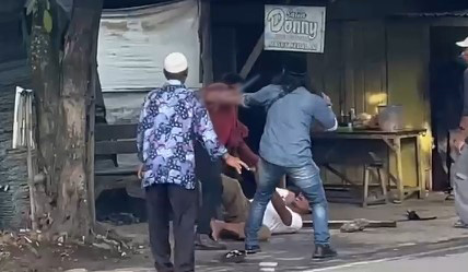 Dari rekaman video berdurasi 25 detik yang beredar, tampak beberapa warga coba melerai perkelahian yang akhirnya mengakibatkan seorang pria bernama Andi tergeletak bersimbah darah terkena luka tikam.