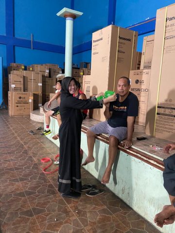 TANAH BUMBU – Ketua Kadin Tanah Bumbu Hj. Arbayah, SH membagikan 1000 masker berlogo Kadin Tanbu kepada masyarakat dan rekan-rekan pencinta olahraga Badminton, sepeda dan lainnya, Minggu (19/04/2020).