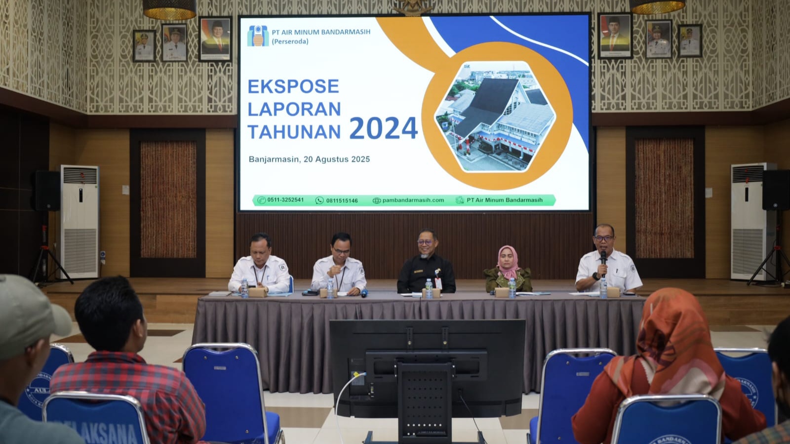 BANJARMASIN, DUTA TV — Plt Dirut PAM Bandarmasih, Syahrani, memberikan keterangan terkait hasil audit per 31 Desember 2023 dan 2024 di Aula PAM Bandarmasih, Rabu sore kemarin. Kegiatan tersebut juga dihadiri oleh Plt Dewan Komisaris PAM Bandarmasih yang diwakili oleh Edy Wibowo dan Anni Hanisah.