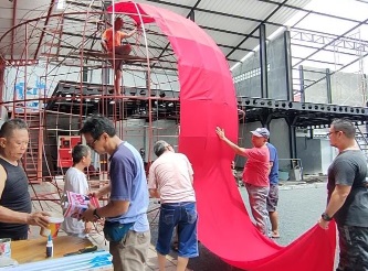 Proses pembuatannya sendiri kini tengah digenjot dengan melakukan pemasangan kain merah yang identik masyarakat Tionghoa.
