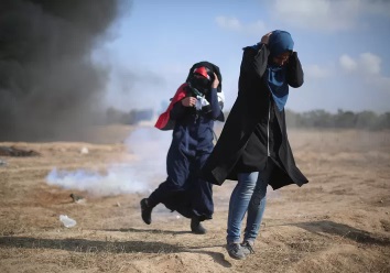 Dia kemudian berujar, “Saya berdiri di balkon rumah pengungsi, dan saya bisa mendengar senapan mesin Israel di timur.”