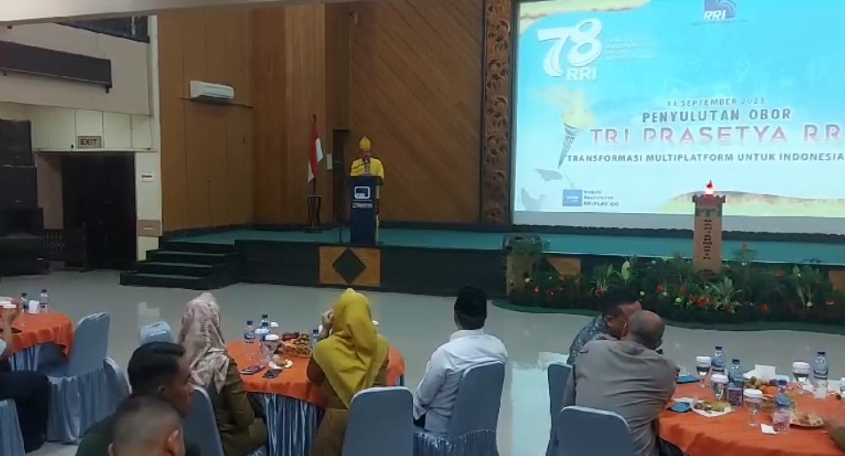 Banjarmasin, Duta TV Penyulutan obor Tri Prasetya oleh kepala LPP RRI Banjarmasin, Darno, menandai hari puncak atau HUT ke-78 RRI, di ruang Auditorium RRI Banjarmasin, Senin siang (10/09/2023).