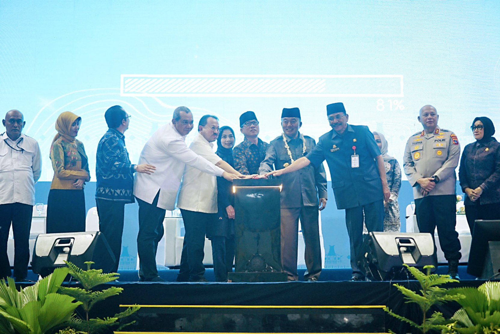 Prosesi peluncuran dan dialog Percepatan Musyawarah Desa /Kelurahan Khusus Pembentukan Koperasi Desa/Kelurahan Merah Putih Kalimantan Selatan (Kalsel), ditandai dengan penekanan tombol bersama.