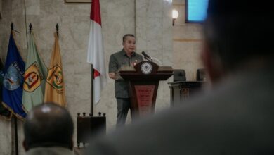 Saat pidatonya, Paman Birin berpesan kepada peserta apel agar tetap bekerja dengan penuh semangat.