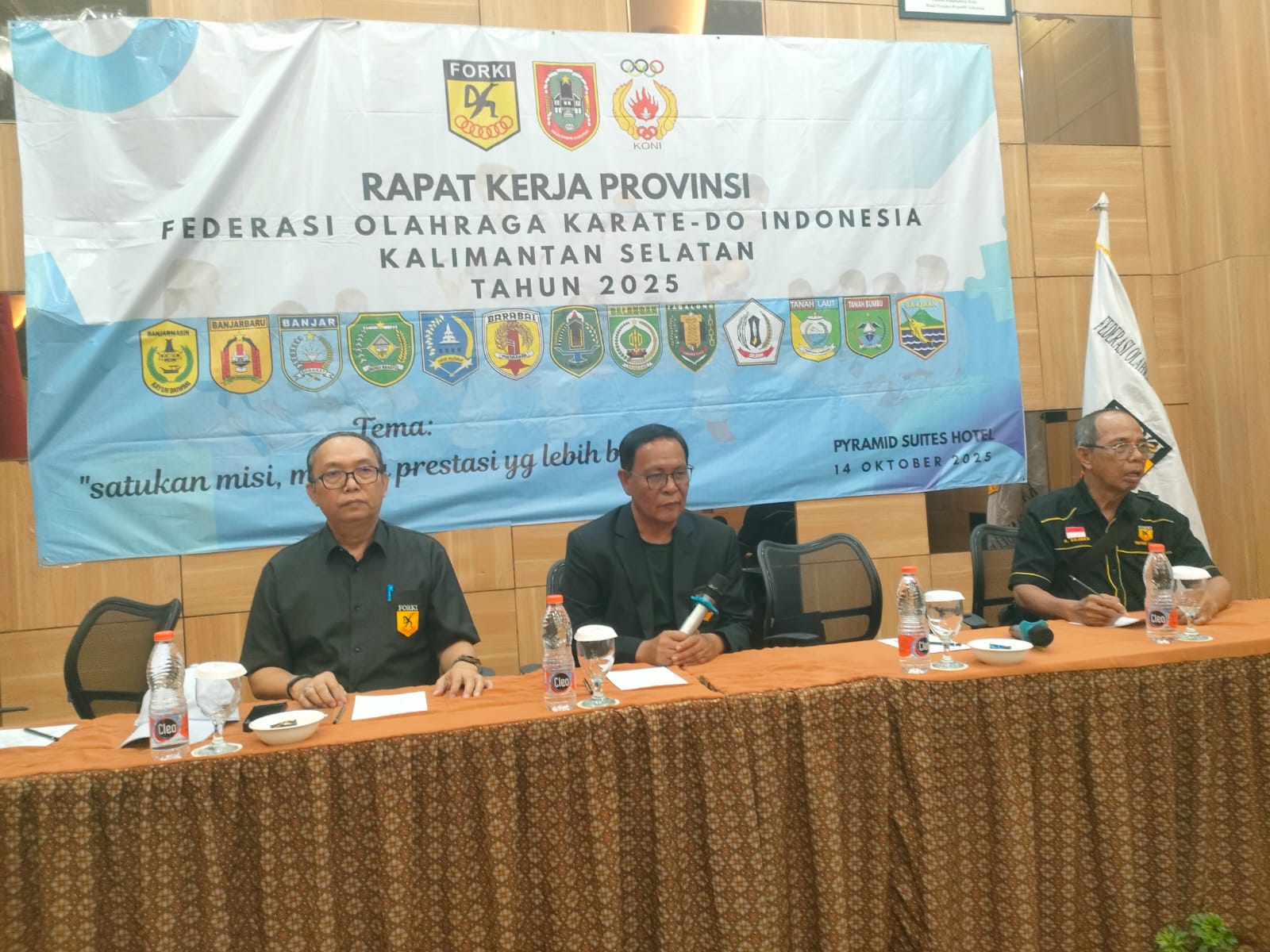 Banjarmasin, DUTA TV — Federasi Olahraga Karate-Do Indonesia (FORKI) Kalimantan Selatan menyelenggarakan Rapat Kerja Provinsi (Rakerprov) Tahun 2025 pada Selasa, 14 Oktober, di Pyramid Suites Hotel Banjarmasin.
