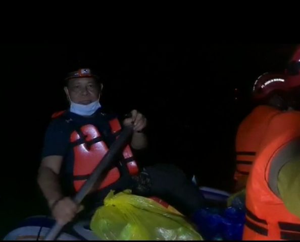 Paman Birin bersama tim gabungan BPBD provinsi Kalsel dan warga setempat harus menyusuri sungai yang di areal persawahan dengan penerangan seadanya, dengan ekstra hari-hati lantaran banyak batang pohon dan semak belukar.