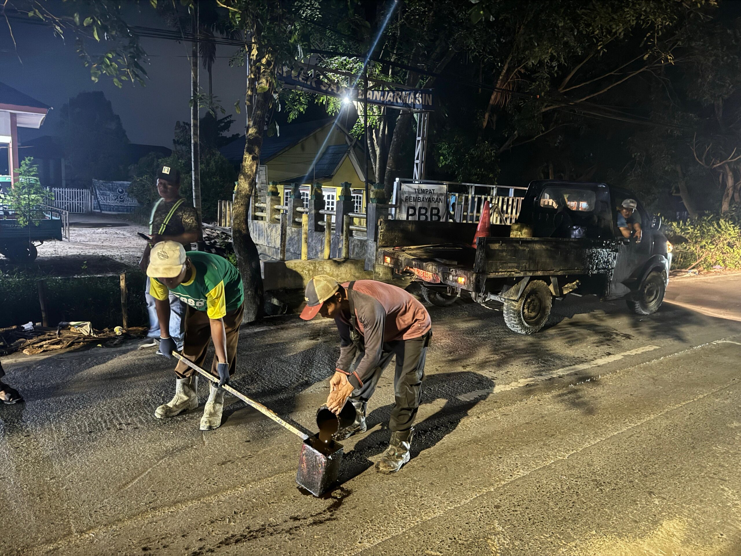 BANJARMASIN, DUTA TV — PAM Bandarmasih melakukan perawatan utilitas pasca pemasangan pipa PAM Bandarmasih, seperti halnya bekas galian pemasangan pipa HDPE dia. 315 mm, di kawasan Jalan HKSN, Banjarmasin Utara, Rabu (08/05/2024) malam.