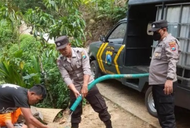 Berkaca dari itu, Polsek Panggul memodifikasi mobil patrolinya untuk mengangkut air bersih. Air yang diambil dari Mapolsek itu kemudian dibagikan kepada warga secara gratis di titik-titik krusial.