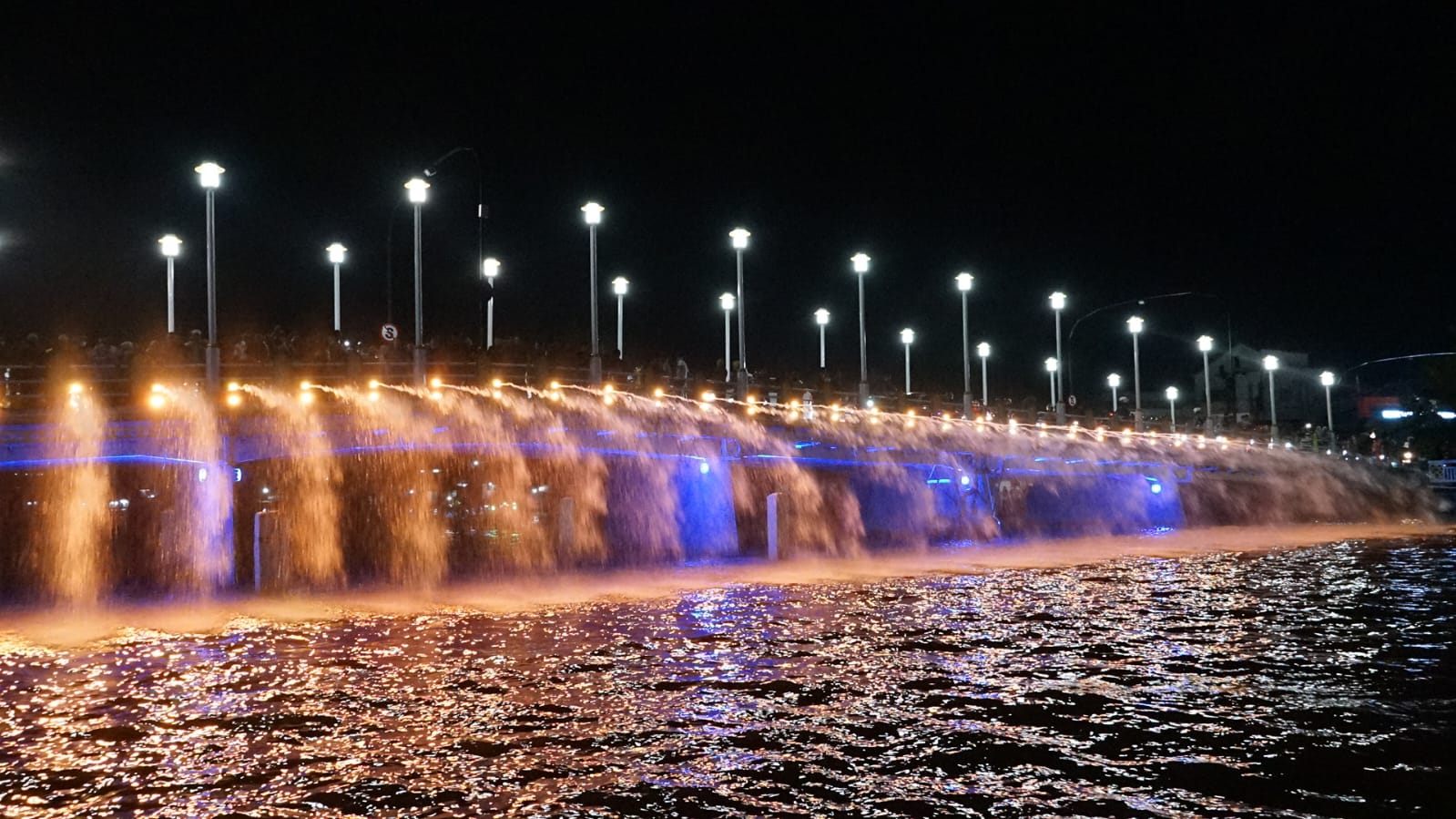 BANJARMASIN, DUTA TV – Ribuan warga yang memadati kawasan Siring Pasar Lama, dan juga Siring Pierre Tendean, menjadi saksi peresmian air mancur Jembatan Pasar Lama atau Jembatan 9 November tepat di malam pergantian tahun, Minggu malam (31/12/2023).