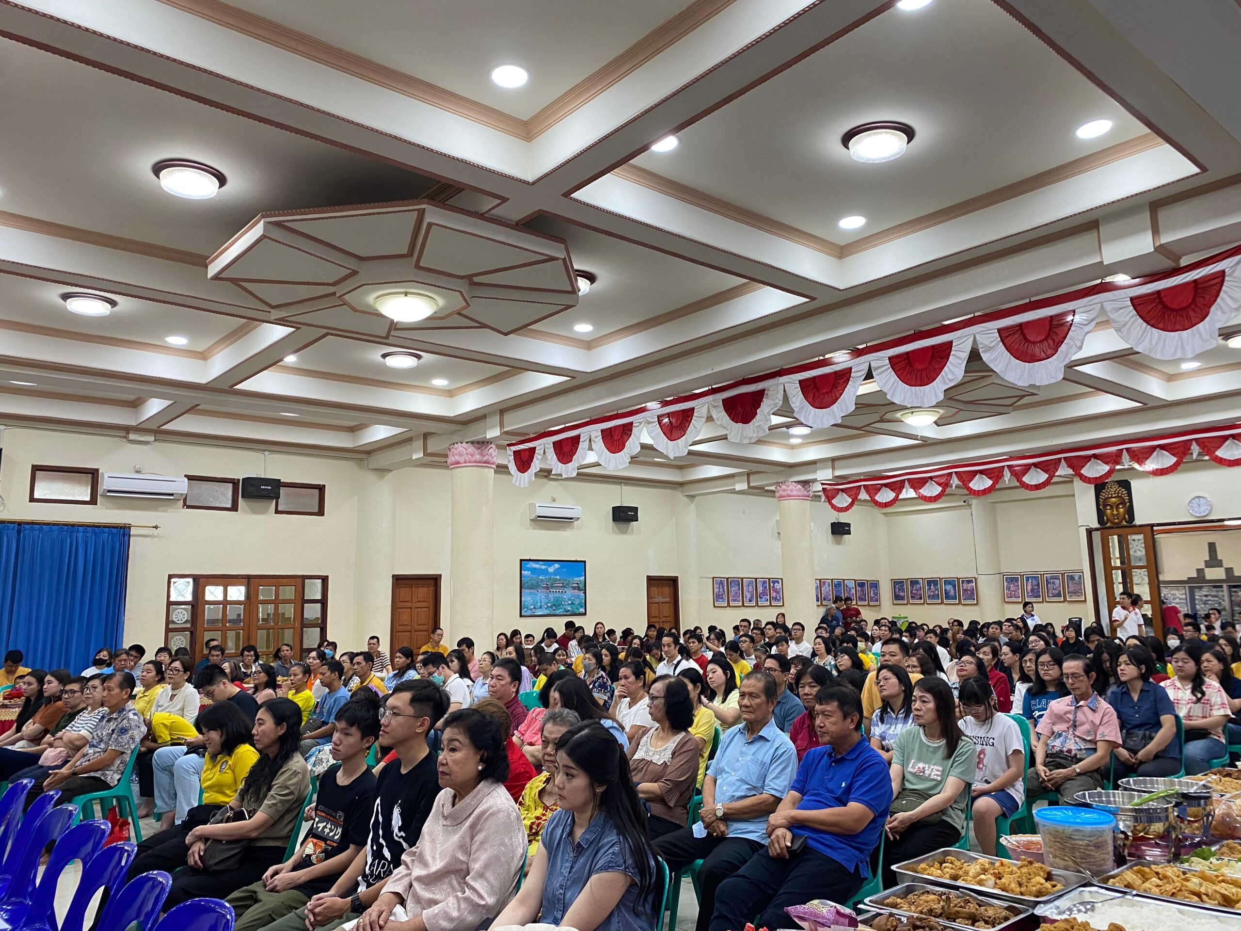 Ibadah Pindapatta yang digelar di aula lantai dua vihara dipimpin oleh Bhante Saddhaviro Mahathera, Samanera Hemaviro, dan Athasilani Abhirati.