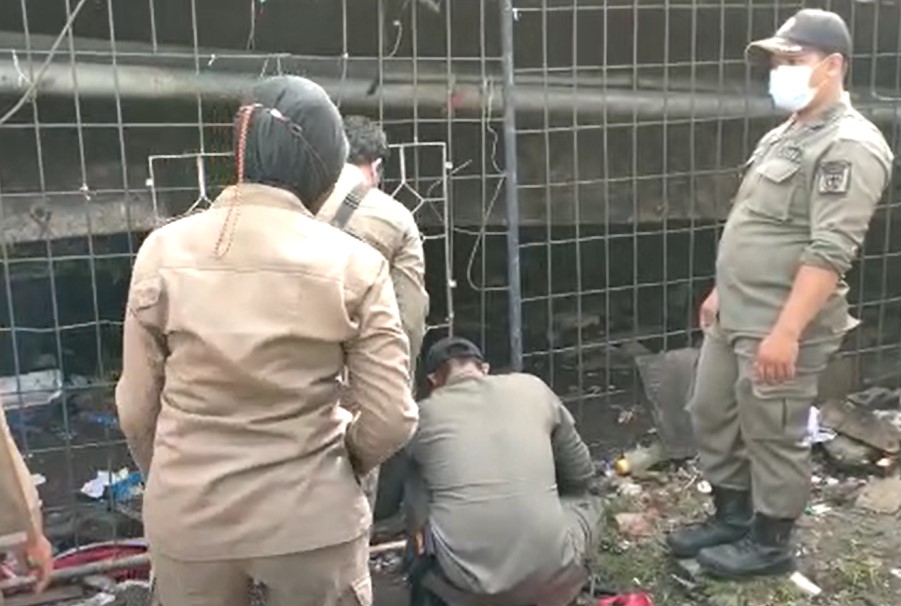 Pol PP Tertibkan Penghuni Kolong Jembatan Antasari