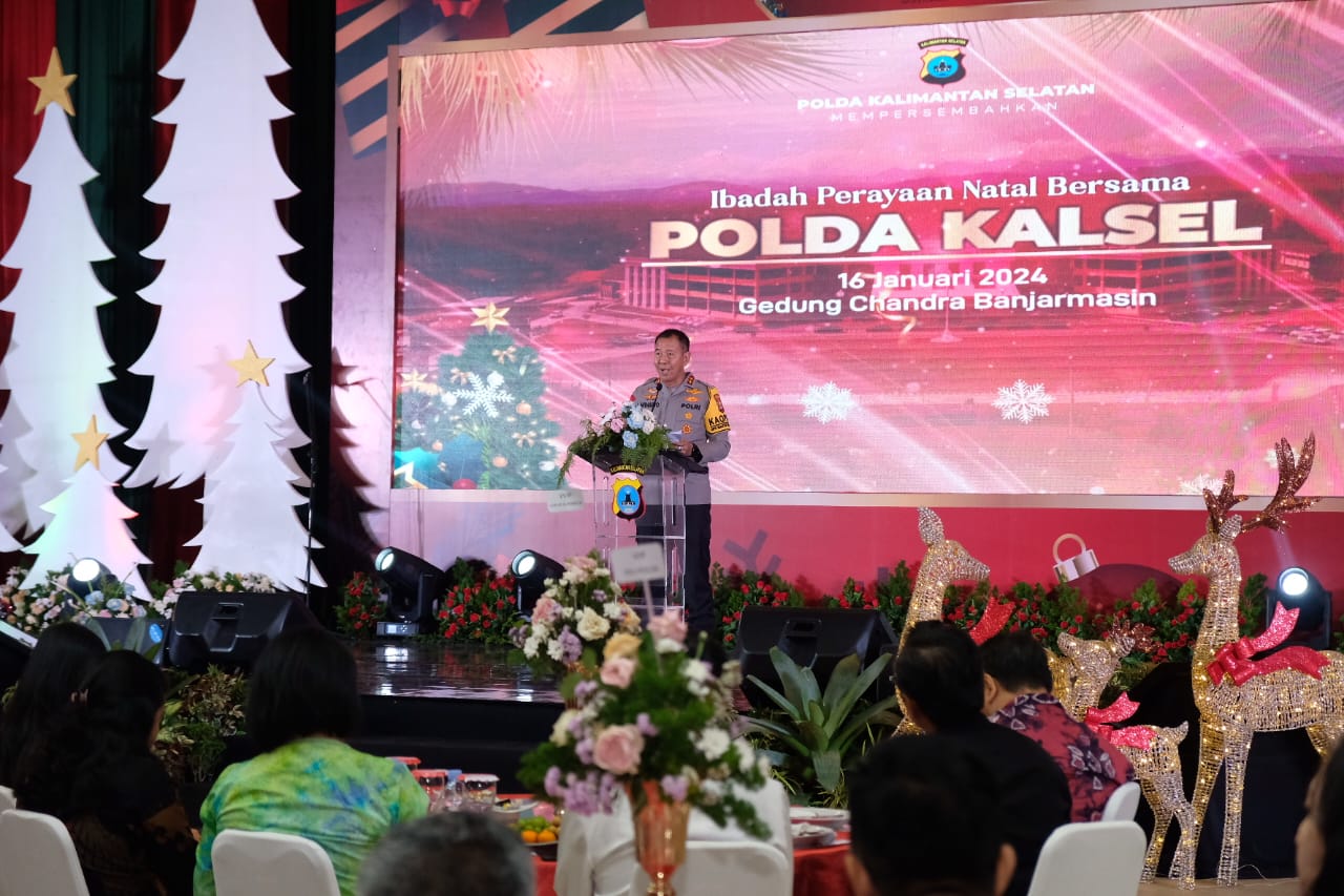 Ucapan selamat Natal kepada seluruh anggota kepolisian disampaikan Kapolda Kalsel. Beliau menekankan pentingnya semangat kebersamaan dan toleransi antar umat beragama dalam mempererat persatuan di tengah-tengah masyarakat.