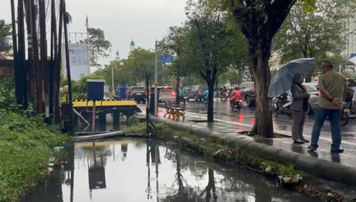 Banjarmasin, Duta TV – Sejumlah pegawai dari Dinas PUPR Banjarmasin dan Satpol PP Banjarmasin terlihat melakukan pemantauan di sungai kecil kawasan Ahmad Yani kilometer 3,5 tepatnya di depan Hotel Banjarmasin Internasional, Senin sore (29/12/25).