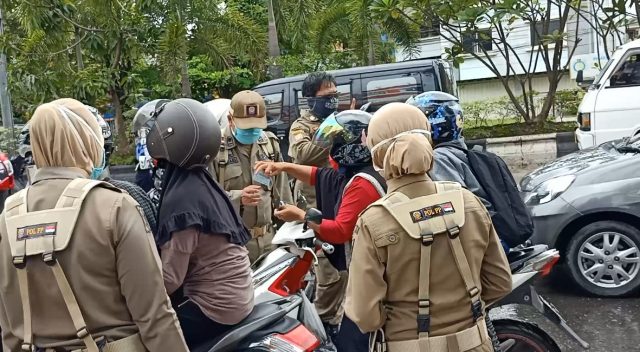 DUTA TV BANJARMASIN – Satu per satu kendaraan roda 2 ini diminta menepi oleh petugas Dinas Perhubungan serta satuan polisi pamong praja kota Banjarmasin, Senin siang (27/04/2020).