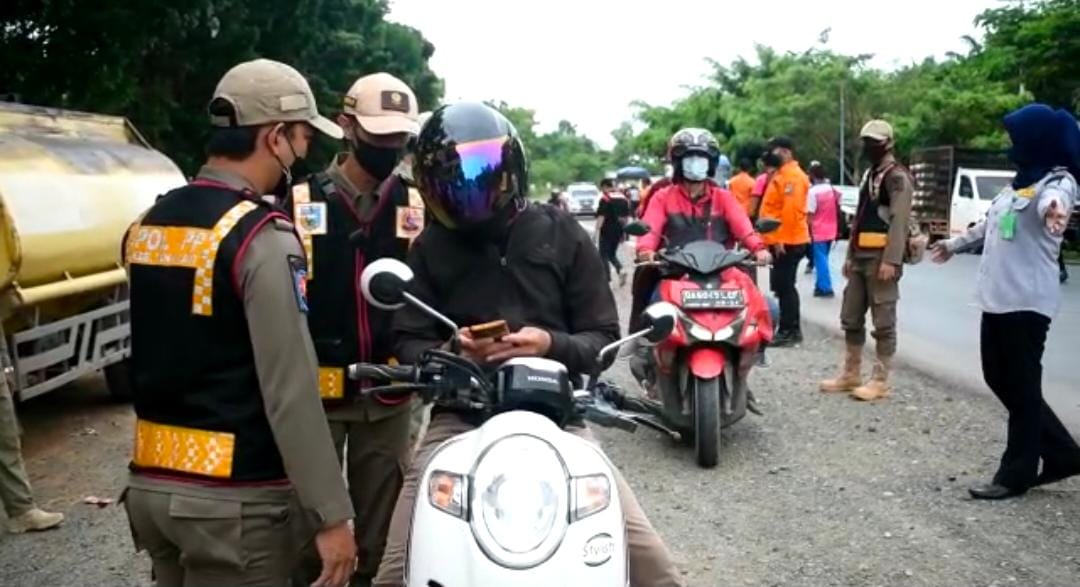 Razia kartu vaksin kali ini salah satunya di lakukan di persimpangan jalan Gunung Kayangan Pelaihari pada Kamis sore (30/12/2021).